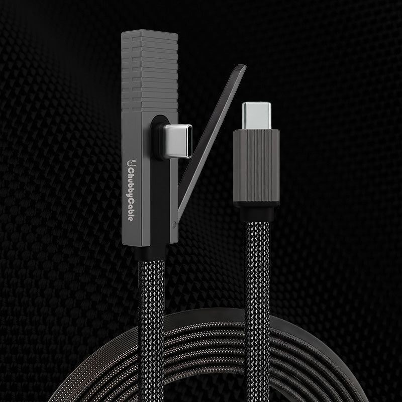 ChubbyCable StandLite™ Pro - 240W Braided Fast Charge Cable with Zinc Alloy Connectors & Built-in Phone Stand