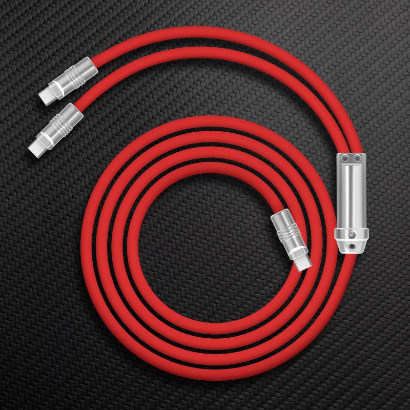This cable has 2 Type-C connectors that can charge two C-end devices simultaneously, such as smartphones, tablets, laptops, etc. No need to carry multiple cables for different devices anymore.